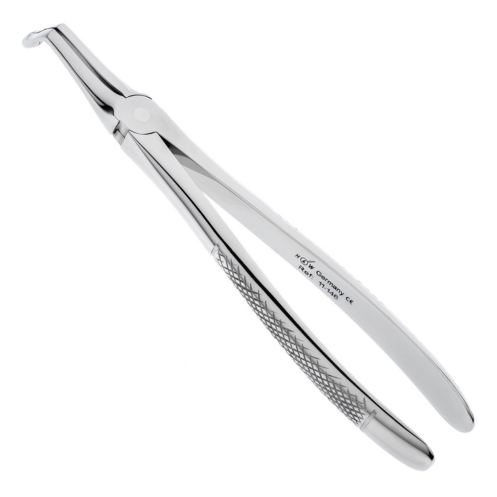 Вертикально-изогнутые щипцы формы №146 изготавливаются немецким производителем HLW Dental Instruments и применяются для удаления корней зубов на нижней челюсти.