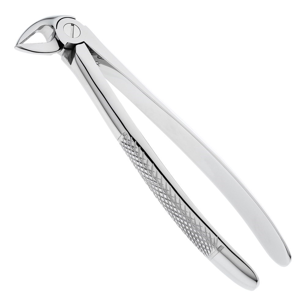 Рабочие части инструмента узкие, сходящиеся и имеют продольно-поперечные насечки на внутренних поверхностях щечек, что обеспечивает плотный захват корня зуба и облегчает его удаление.