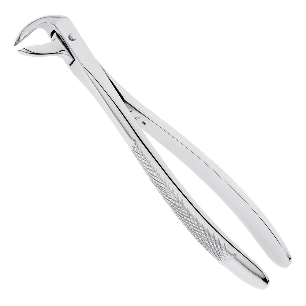 Обе несходящиеся рабочие части щипцов заканчиваются шипами, которые вводятся и фиксируются в бифуркации корней. На внутренней поверхности щечек инструмента есть продольно-поперечные насечки, которые обеспечивают плотный захват зуба и облегчают его удаление.