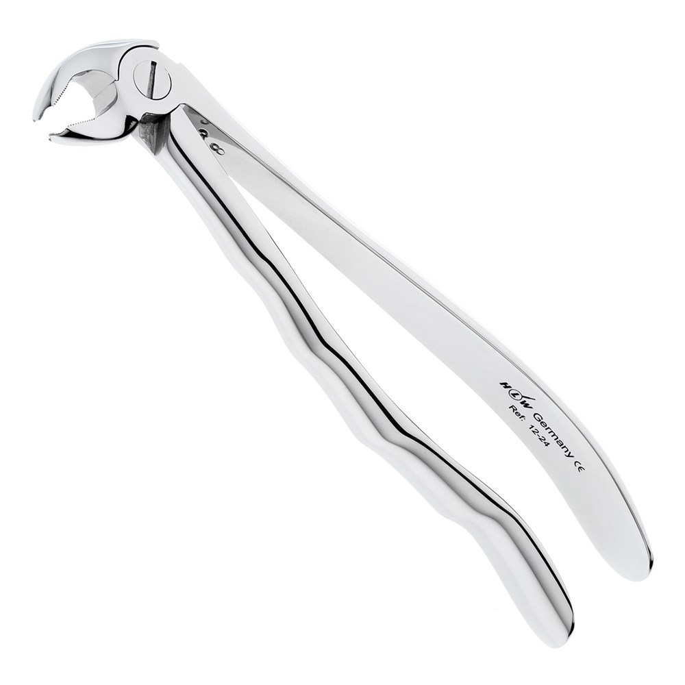 При удалении левых моляров на нижней челюсти применяются щипцы формы №24. Производителем инструмента является немецкая компания HLW Dental Instruments.