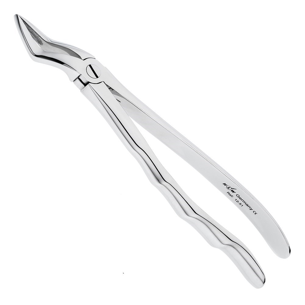 Для удаления корней на верхней челюсти используются щипцы формы №51 производства HLW Dental Instruments.