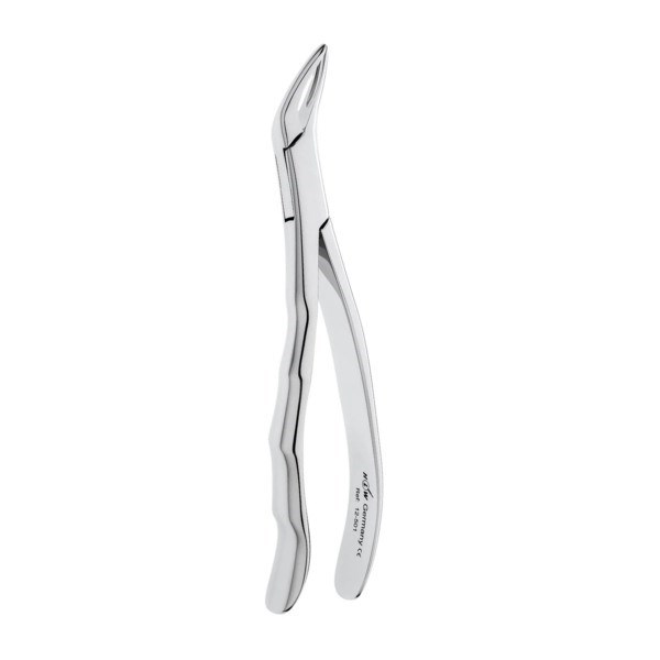 Щипцы корневые с анатомической ручкой HLW (Германия) используются для удаления зубов и корней на верхней челюсти. Щипцы имеют двойной изгиб по плоскости относительно оси инструмента, что позволяет ввести их глубоко в полость рта, при этом нижняя челюсть не препятствует проведению операции.