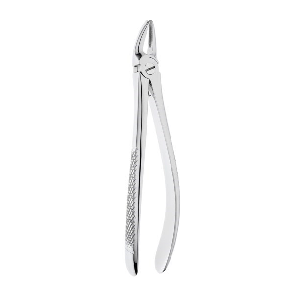 Щипцы для удаления премоляров на верхней челюсти. Форма №7. Щипцы имеют двойной изгиб по плоскости. Бранши не сходящиеся, расположены под тупым углом к продольной оси инструмента.