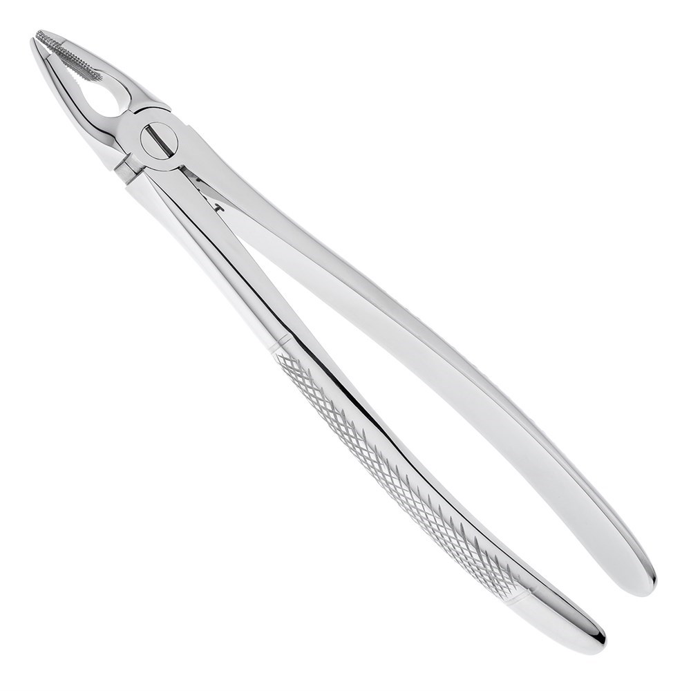Рабочие части инструмента несходящиеся, имеют вогнутости среднего размера на внутренних поверхностях щечек, которые покрыты продольно-поперечными насечками для предотвращения их проскальзывания по поверхности удаляемого зуба. На концах щечек расположено коническое сужение, за счет которого осуществляется глубокое введение щипцов и их фиксация на зубе, что минимально травмирует окружающие ткани.