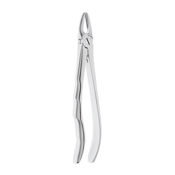 Щипцы с анатомической ручкой HLW (Германия) предназначена для удаления резцов и клыков на верхней челюсти. Рабочие части инструмента имеют прямую форму. Продольные оси щечек и ручек находятся в одной плоскости и совпадают. Обе щечки одинаковой формы с закругленными концами, узкие, не сходящиеся, с внутренней поверхности рабочей части имеют поперечно-продольные насечки. Такая конструкция щипцов позволяет правильно наложить и зафиксировать их на зубе, и при его удалении избежать препятствия со стороны нижней челюсти.
