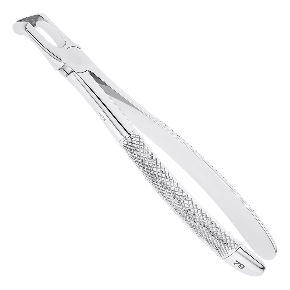 Щипцы формы №79 применяются для удаления третьих моляров на нижней челюсти. Рабочие части вертикально-изогнутого инструмента с продольно-поперечными насечками не сходящиеся и имеют шип на внутренней поверхности, погружаемый в область бифуркации. Щипцы имеют изгиб по плоскости под тупым углом к продольной оси инструмента, благодаря чему есть возможность ввести щипцы глубоко в дистальный отдел.