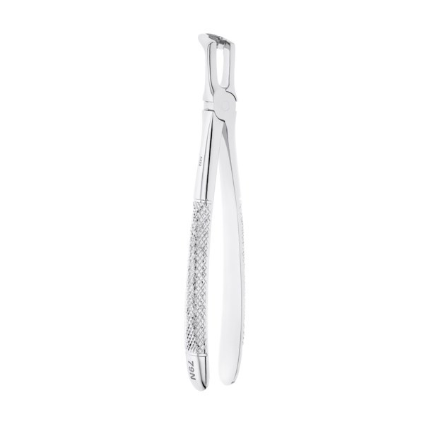 Щипцы формы №79N используются для удаления третьих моляров на нижней челюсти. Рабочие части вертикально-изогнутого инструмента не сходящиеся. Щипцы осуществляют глубокий захват зуба, благодаря небольшим шиповидным выступам на концах щечек инструмента. За счет продольно-поперечных насечек на внутренних поверхностях рабочих частей щипцов происходит надежный захват и фиксация инструмента на зубе мудрости.
