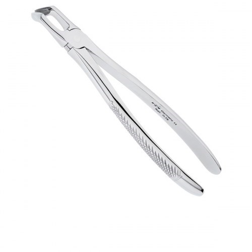 Щипцы имеют изгиб по плоскости под тупым углом к продольной оси инструмента, благодаря чему есть возможность ввести щипцы глубоко в полость рта.