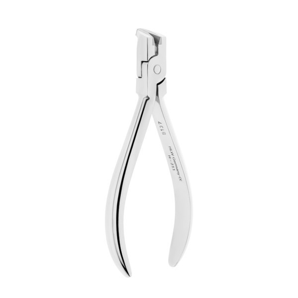 Щипцы HLW (Германия) используются в ортодонтии и предназначены для формирования уступов. Инструмент обеспечивает надежное удерживание дистального участка дуги при ее откусывании, не допускает отскакивания остатков дуги вследствие пружинящего эффекта. Рабочая часть дистальных кусачек расположена под прямым углом к ручкам, что обеспечивает удобный доступ.