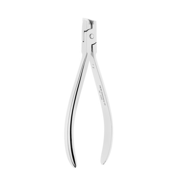 Щипцы ортодонтические дистальные, HLW (Германия) предназначены для укорочение дуги в полости рта дистально от щечных трубок моляров, а также вне полости рта. Инструмент обеспечивает надежное удерживание дистального участка дуги при ее откусывании, не допускают отскакивания остатков дуги вследствие пружинящего эффекта. Рабочая часть дистальных кусачек расположена под прямым углом к ручкам, что обеспечивает удобный доступ.