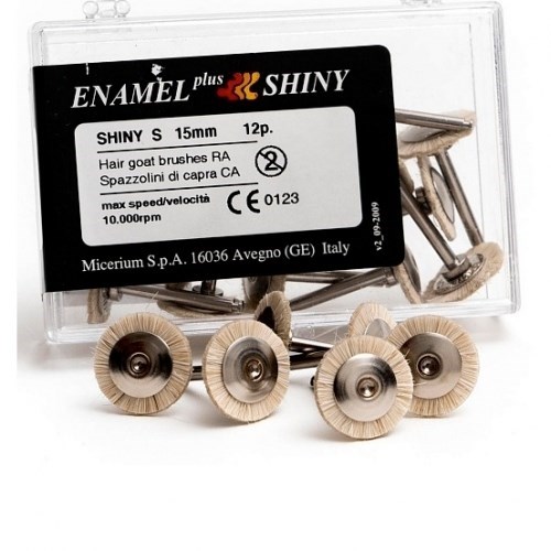Щётки Shiny S из козьей щетины для полировки RA/CA, Enamel, (12шт). Micerium S.p.A