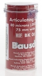 Бумага артикуляционная BK 06 шёлк красный, 80 мкм, (ролик 3 м х 80 мм). Артикуляционный шёлк Бауша – это высококачественный шёлк с такими же свойствами, как у нашей двухсотмикронной артикуляционной бумаги с нарастающей интенсивностью цвета. Высокая прочность, эластичность и малая толщина нашего шёлка позволяют ему плотно облегать все бугорки и углубления зубной поверхности. Шёлк оставляет очень точные отпечатки и может применяться при точной препаровке. Натуральный шёлк состоит из волокон, представляющих собой трубчатые белковые структуры. Благодаря такому строению, шёлк обладает очень высокой способностью депонировать краску. При работе на моделях шёлк можно использовать очень экономно: одну и ту же шёлковую полоску разрешается применять до десяти раз.