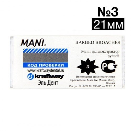 Упаковка: Short Barbed Broaches №3 (Mani), 21 мм - 12 шт.