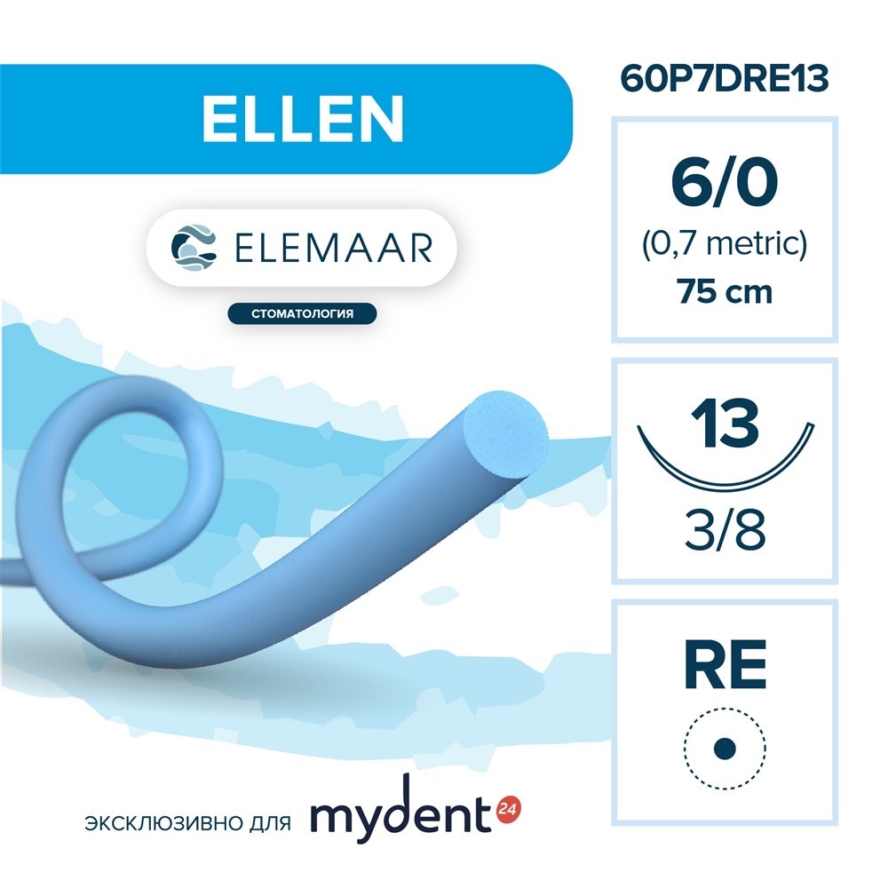 Шовный материал ELLEN – синтетическая нерассасывающаяся мононить из полипропилена. Материал практически не вызывает реакции в тканях ротовой полости, не токсичен, не впитывает жидкость из прокольного канала. Стоматологам следует проявлять осторожность при работе с полипропиленом, избегать излишнего давления иглодержателем и перегибов, которые объясняют большинство случаев разрушения нити после операции. Такая травма может привести к перелому шва с неприятными последствиями в раннем послеоперационном периоде. В хирургии полости рта нити большого размера (от 2/0 и выше) могут вызывать дискомфорт у пациента из-за своей жесткости и колкости кончиков. При сильном отеке нить может прорезать края раны. В качестве высокотехнологичного аналога полипропилена мы рекомендуем фторсодержащие нити ELFTORID и ELTETRA.
