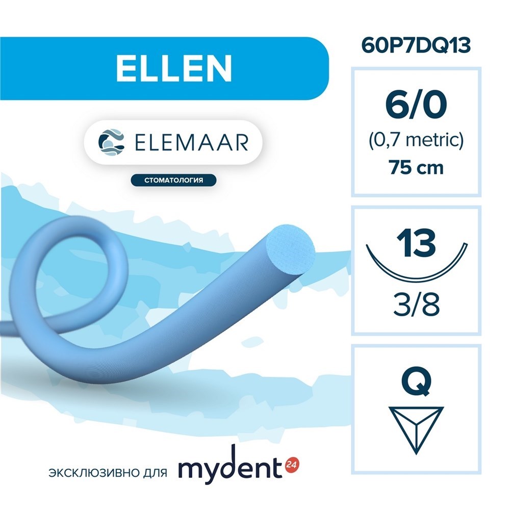 Шовный материал ELLEN – синтетическая нерассасывающаяся мононить из полипропилена. Материал практически не вызывает реакции в тканях ротовой полости, не токсичен, не впитывает жидкость из прокольного канала. Стоматологам следует проявлять осторожность при работе с полипропиленом, избегать излишнего давления иглодержателем и перегибов, которые объясняют большинство случаев разрушения нити после операции. Такая травма может привести к перелому шва с неприятными последствиями в раннем послеоперационном периоде. В хирургии полости рта нити большого размера (от 2/0 и выше) могут вызывать дискомфорт у пациента из-за своей жесткости и колкости кончиков. При сильном отеке нить может прорезать края раны. В качестве высокотехнологичного аналога полипропилена мы рекомендуем фторсодержащие нити ELFTORID и ELTETRA.