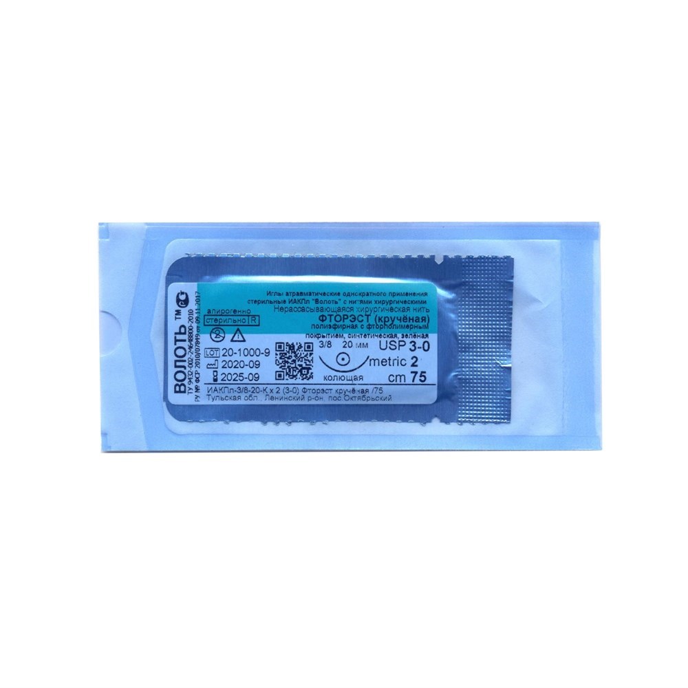 Шовный материал Фторэст (крученая) 3/0, L75 см, игла 20 мм, изгиб 3/8 колющая одноигольная