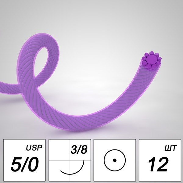 Шовный материал Лактисорб A 5/0 braided K 16 mm 3/8 75 cm (12 шт), PGL5K1638-12-75