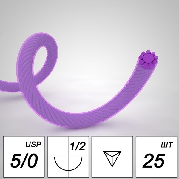 Шовный материал Лактисорб A 5/0 braided RR 16 mm 1/2 75 cm (25 шт), PGL5RR1612-25-75