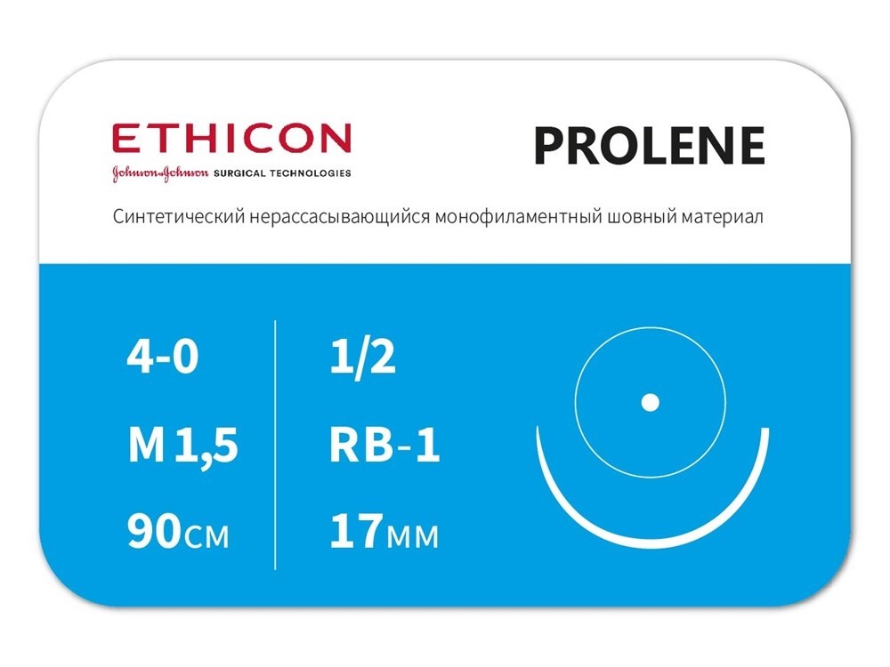 Шовный материал Пролен 4/0, игла колющая 17 мм, 2 иглы, окружность 1/2, нить 90 см, окрашенный 12 шт/упак