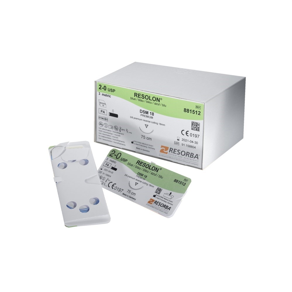 Шовный материал Резолон. Нерассасывающаяся монофиламентная нить из полиамида 6. Легко проходит через ткани, при завязывании образует гладкие и очень надежные узлы (аналог Этилон, Дафилон)