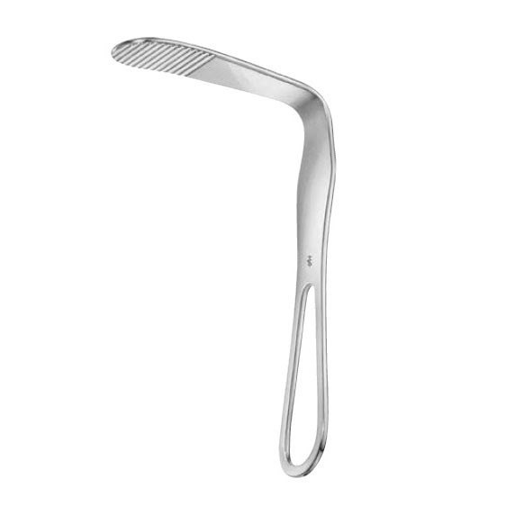 Шпатель по HARTMANN, длина 150 мм, OM230R, B.Braun (Aesculap, Германия) выполнен из нержавеющей стали, имеет г-образную форму с поперечными насечками на рабочей части. Инструмент используется для отведения и фиксации языка, что позволяет улучшить видимость и безопасность при визуальном осмотре полости рта.