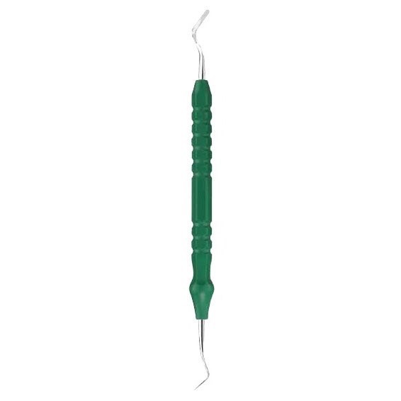 Шпатель, жесткий, 2,0/2,0мм, длина 175мм, DE150R, B.Braun (Aesculap, Германия) состоит из прямой эргономичной ручки зеленого цвета с удобной формой захвата и рифлением, а также двухсторонними рабочими изогнутыми частями. Инструмент используется для замешивания пломбировочной массы и ее растирания.
