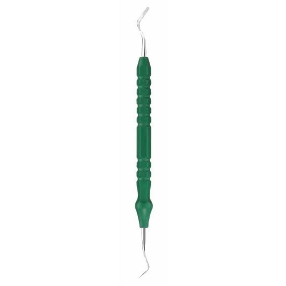 Шпатель, жесткий, 2,5/2,5 мм, длина 175 мм, DE151R, B.Braun (Aesculap, Германия) состоит из прямой эргономичной ручки зеленого цвета с удобной формой захвата и рифлением, а также двухсторонними рабочими изогнутыми частями. Инструмент используется для замешивания пломбировочной массы и ее растирания.