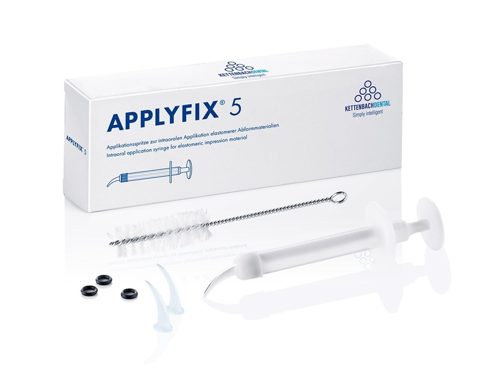 Серия продуктов Applyfix® включает вспомогательные устройства для дозирования и нанесения современных оттискных материалов.Applyfix® 5 – шприц-аппликатор из пластмассы и с предназначенными для него запасными канюлями применяется для любых оттискных материалов, наносимых из шприца. Ваши преимущества: Возможность стерилизации для самых жестких требований гигиены Незаменимые помощники в современной стоматологической клинике Легкие и компактные устройства, эргономичной формы для самого простого применения Комплектность: 2 шприца-аппликатора из пластмассы 12 запасных канюль, принадлежности.