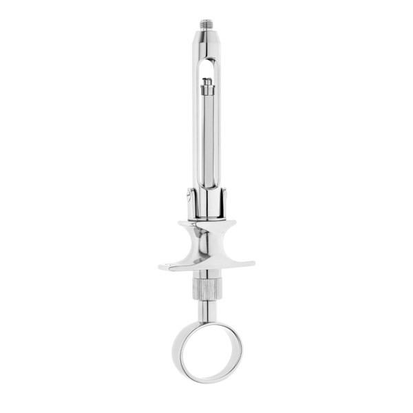 Шприц инфильтрационной и проводниковой анестезии с функцией асспирации. Шприц надежно удерживает карпулу благодаря видвижному трехстороннему гарпуну-фиксатору на конце штока. Загрузка карпулы задняя. Переламывающийся механизм.