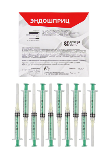В комплект «ЭНДОШПРИЦ» входят шприцы, оснащенные надетыми на них эндодонтическими иглами со специальной проточкой (оптимальный диаметр 0,3 мм (G27), длина – 38 мм) и закручивающимися замками (Luer lock).