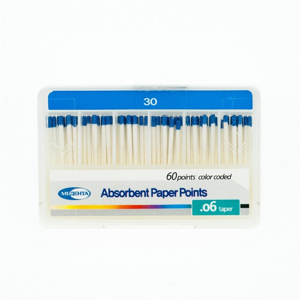 Штифты бумажные абсорбирующие - предназначены для высушивания корневых каналов. Размер № 30, конусность 06. Изготовлены из бумаги высокой абсорбирующей способности. Натуральные - не содержат примесей связующих веществ. Идеальная плотность для введения в каналы без дополнительного скручивания и сгибания. Сохраняют форму при извлечении из канала. Стерильны. Легкая идентификация - цветокодированы в верхней части штифта. Абсолютное соответствие размера стандарту ISO. Упаковка 60 шт.