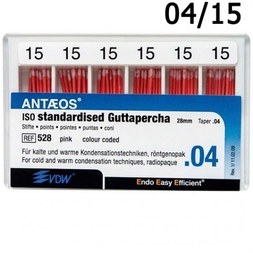 Описание: Штифты гуттаперчевые конусные 04 №15 (60шт),VDWШтифты стоматологические гуттаперчевые (Guttapercha points) от VDW.