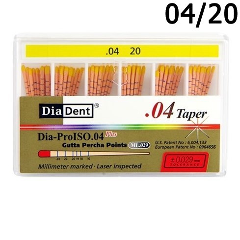 Описание: Штифты гуттаперчевые конусные .04 №20 (60шт), DiaDentШтифты гуттаперчевые DiaDent Конусность: 04. НОМЕР (ISO): №20.