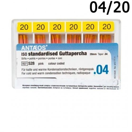 Описание: Штифты гуттаперчевые конусные 04 №20 (60шт),VDWШтифты стоматологические гуттаперчевые (Guttapercha points) от VDW.