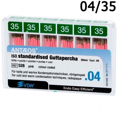 Описание: Штифты гуттаперчевые конусные 04 №35 (60шт),VDWШтифты стоматологические гуттаперчевые (Guttapercha points) от VDW.