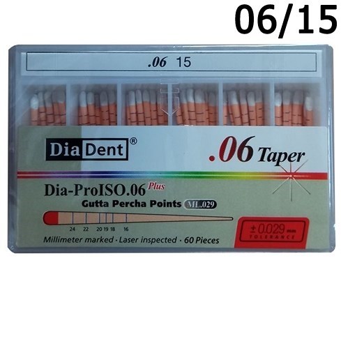 Описание: Штифты гуттаперчевые конусные .06 №15 (60шт), DiaDentШтифты гуттаперчевые DiaDent Конусность: 06. НОМЕР (ISO): №15.