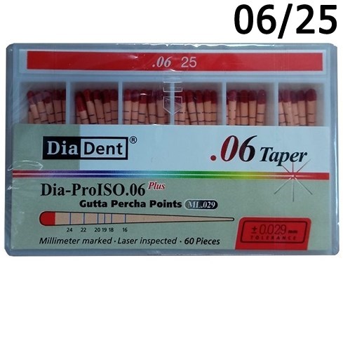Описание: Штифты гуттаперчевые конусные .06 №25 (60шт), DiaDentШтифты гуттаперчевые DiaDent Конусность: 06. НОМЕР (ISO): №25.