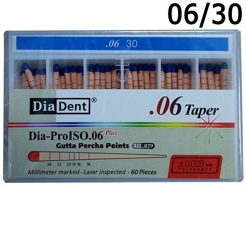 Описание: Штифты гуттаперчевые конусные .06 №30 (60шт), DiaDentШтифты гуттаперчевые DiaDent Конусность: 06. НОМЕР (ISO): №30.