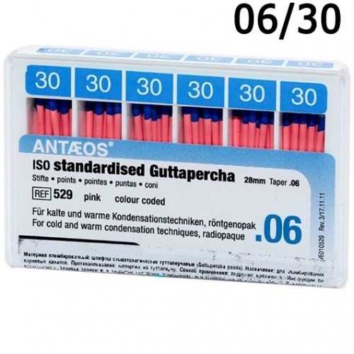 Описание: Штифты гуттаперчевые конусные 06 №30 (60шт),VDWШтифты стоматологические гуттаперчевые (Guttapercha points) от VDW.