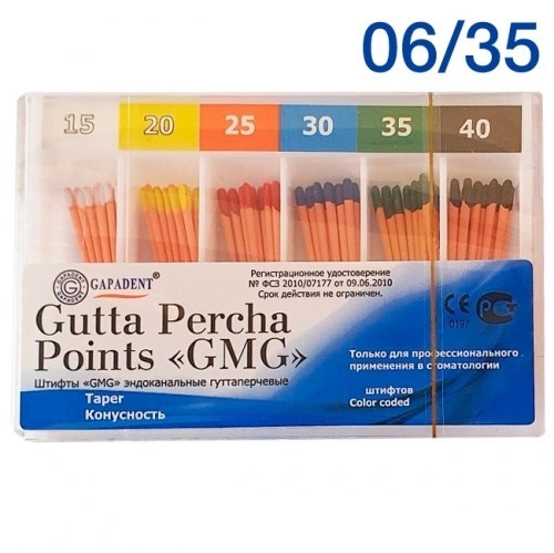 ОПИСАНИЕ: ШТИФТЫ ГУТТАПЕРЧЕВЫЕ КОНУСНЫЕ GMG 06/35 (60ШТ), TIANJIN GAPADENT