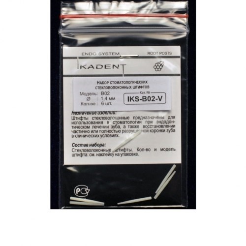 Описание: Штифты Ikadent IKS-В02-V (6шт.) стекловолоконные коническиеЭндоканальные штифты «IKADENT» применяются в качестве армирующего (усиливающего) элемента для эстетической реставрации частично разрушенной коронки зуба при эндодонтическом лечении. Эти штифты используются во всех группах зубов при сохранении минимум двух стенок естественной коронки. В силу отсутствия плеча (опорного элемента) штифты не предназначены для композитных реставраций при значительном повреждении или полной утрате естественной коронки, а также крепления на них металлокерамических коронок, мостов и прочих объемных конструкций.