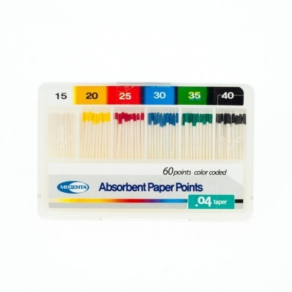 Штифты "Медента" абсорбирующие бумажные №15-40, 04 конусность, 60 шт