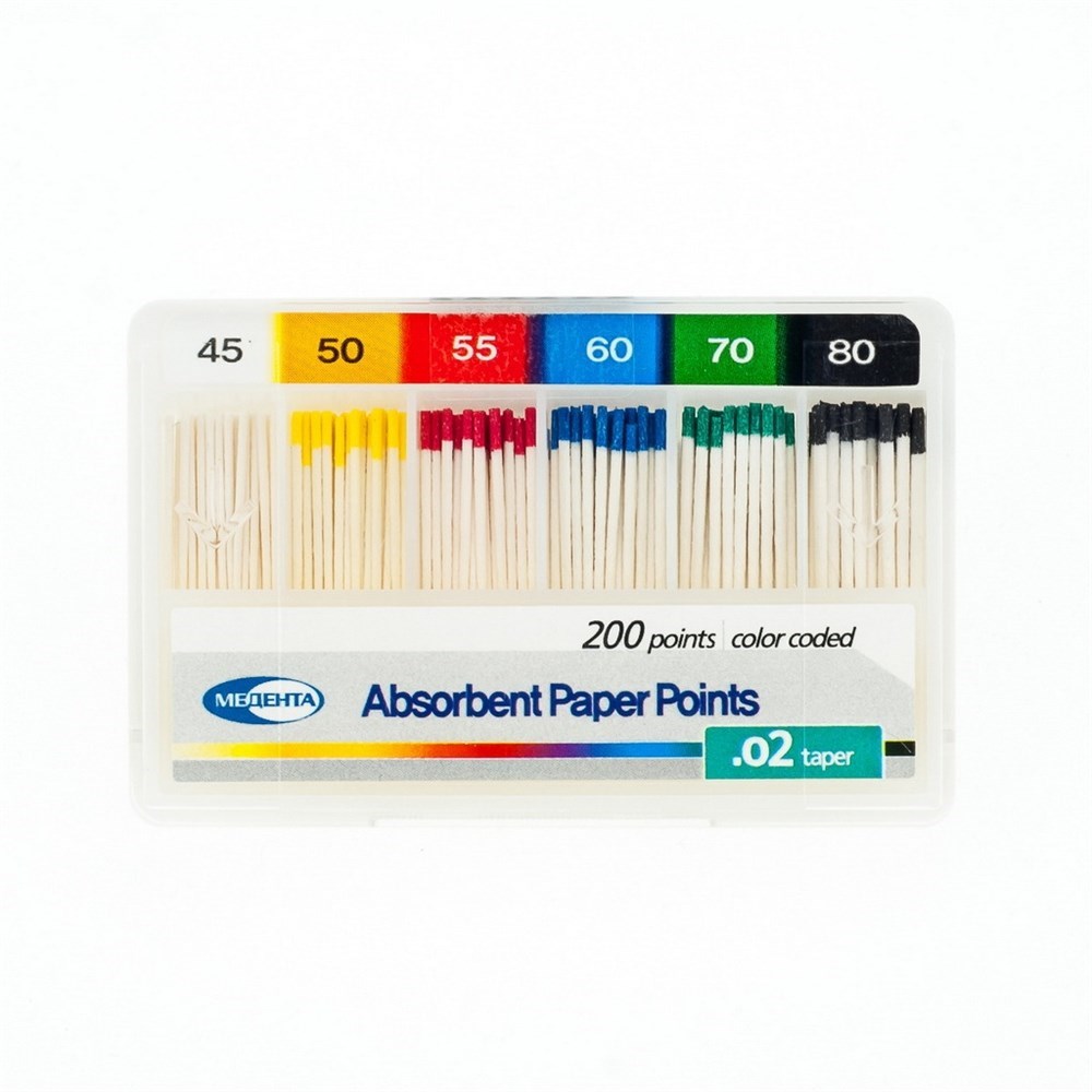 Штифты Медента" бумажные 02 №45-80, абсорбирующие , 200 шт.