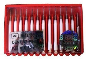 Описание: Штифты титановые парапульпарные 0,6мм 12 шт.+ 1 раз. H.Nordin (Швейцария)Парапульпарные штифты Нордин это не просто проволока с резьбой и хвостовиком, а прочный стержень из чистого титана, обработанный машинным способом. Резьба нарезана со швейцарской часовой точностью, она легко ввинчивается в твердые ткани зуба, обеспечивая максимально надежное крепление. Каждый штифт снабжен хвостовиком, облегчающим вкручивание без нежелательной нагрузки на дентин.