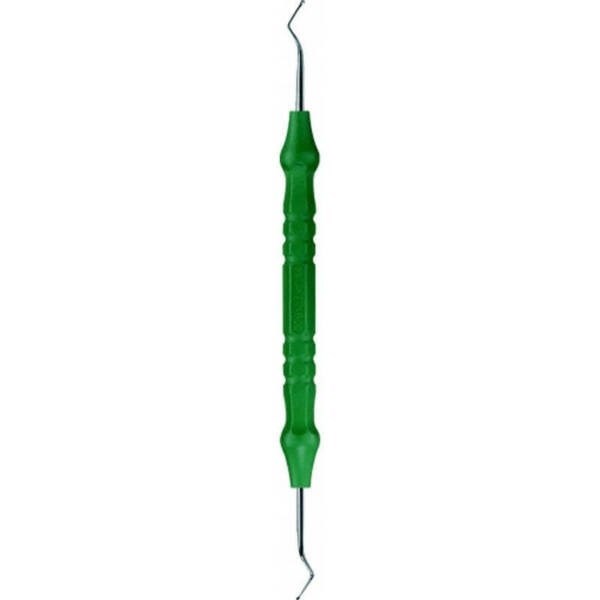 Штопфер, 0,8/1,0 мм, длина 175 мм, контругловой, DE056R, B.Braun (Aesculap, Германия) состоит из эргономичной ручки зеленого цвета с выпуклостями, которые обеспечивают крепкий захват и не позволяют выскальзывать из руки специалиста во время проведения работ. Инструмент применяется для внесения и предварительного распределения пломбировочного материала в кариозной полости зуба. Он имеет двухстороннюю рабочую часть из нержавеющей стали с особой формой головки, благодаря которой, штопфер позволяет максимально плотно прижать материал к стенкам полости, что исключает риск образования воздушных каверн в пломбе.