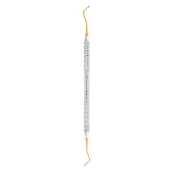 Рекомендован к использованию с малыми порциями пломбировочных материалов любых видов в полостях всех классов. Служит для конденсации и моделирования. Рабочие и промежуточные части покрыты слоем нитрида-титана и имеют золотистую окраску. Ручка цельнолитая, стальная с нанесенным по краям ретенциоными узором стандартного вида диаметром не более 8 мм.