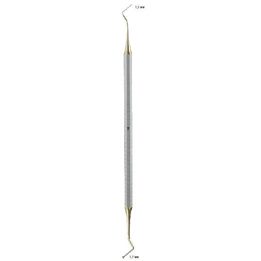 Штопфер, по FREIBURG, 1,3/1,7 мм, длина 170 мм, DF085R, B.Braun (Aesculap, Германия) изготовлен из высококачественной нержавеющей стали и состоит из многогранной ручки с поперечными насечками, которые обеспечивают крепкий захват и не позволяют выскальзывать из руки специалиста во время проведения работ. Инструмент применяется для внесения и предварительного распределения пломбировочного материала в кариозной полости зуба. Он имеет двухстороннюю рабочую часть с особой формой головки, благодаря которой, штопфер позволяет максимально плотно прижать материал к стенкам полости, что исключает риск образования воздушных каверн в пломбе.