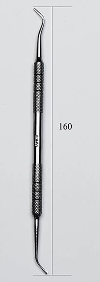 Штопфер-гладилка N 1, двусторонний, инструмент для уплотнения пломбировочного материала в кариозной полости, представляющий собой металлический стержень с грушевидной головкой, расположенной под тупым углом к нему. Длина 160 мм.