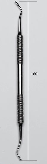 Штопфер-гладилка ШГ № 3 (Можайск), двусторонний - инструмент для уплотнения пломбировочного материала в кариозной полости, представляющий собой металлический стержень с грушевидной головкой, расположенной под тупым углом к нему. Изготовлен из нержавеющей стали. Длина 160 мм.