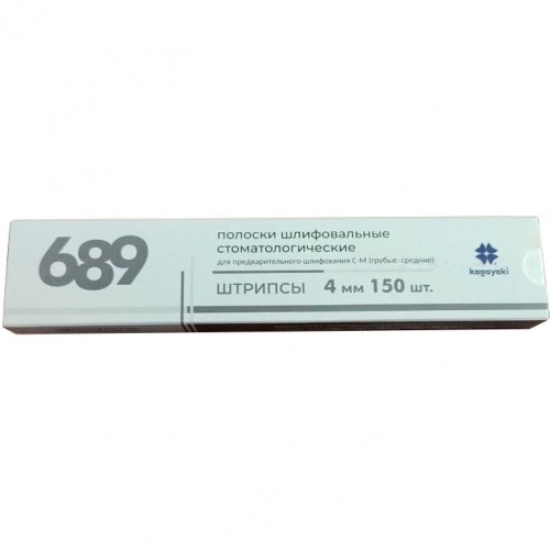 Описание: Штрипсы Kagayaki 689/С-М, 4 мм, 150 шт. (грубый-средний)Штрипсы (полоски) шлифовальные стоматологические Кагаяки 689/С-М.